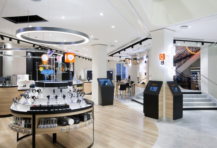 Dans le flagship d’Orange, la digitalisation est présente à toutes les étapes du parcours client. C’est l’affichage dynamique sous toutes les formes :